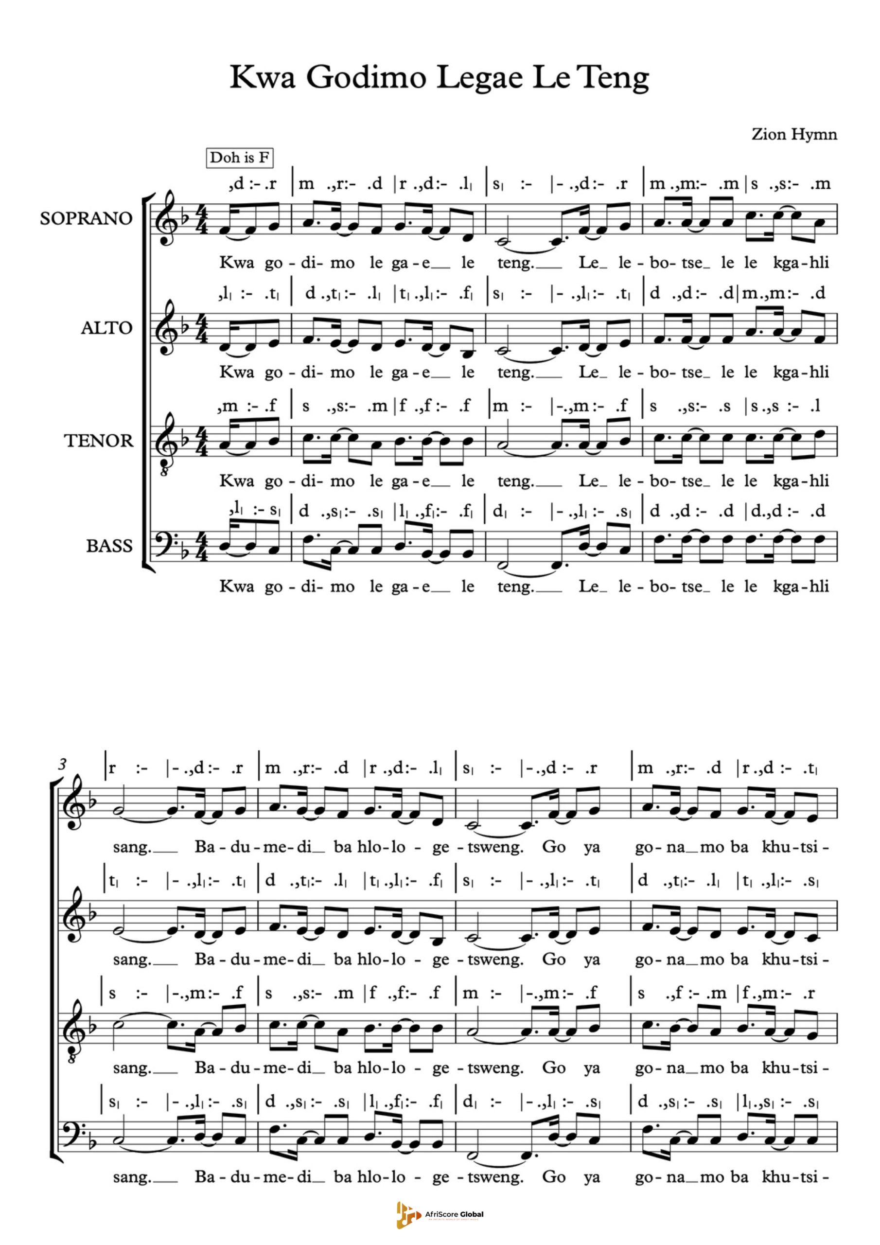 “Kwa Godimo Le Gae Le Teng, Le Le Botse Le Le Kgahlisang” is a worship song that points to the hope of a beautiful and glorious home above. The lyrics express longing for heaven as a place of peace, joy, and eternal rest, encouraging believers to fix their hearts on what is to come. The song offers comfort and hope, making it especially meaningful for reflective worship, memorial services, and choral.
