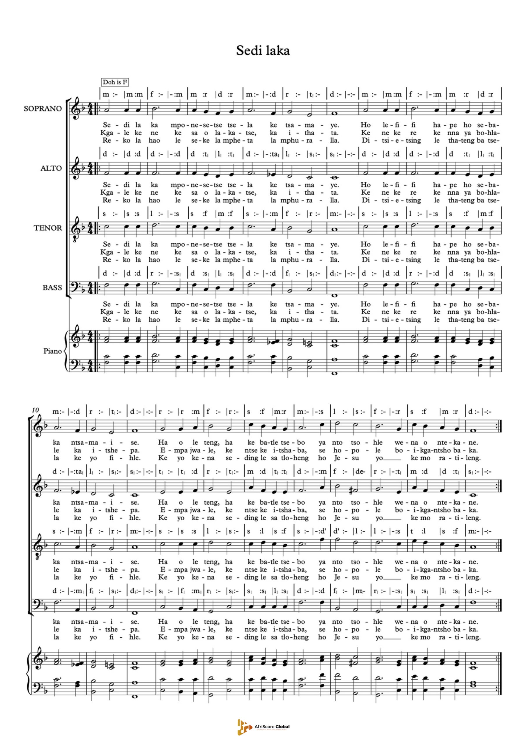“Sedi La Ka” is a beloved Setswana hymn that translates to “My Light” in English. It is a song of faith and devotion, often sung in moments of reflection or worship. The lyrics express gratitude and reliance on God as the guiding light through life’s challenges. Its serene melody and spiritual depth resonate deeply, making it a cherished piece in African hymnody.